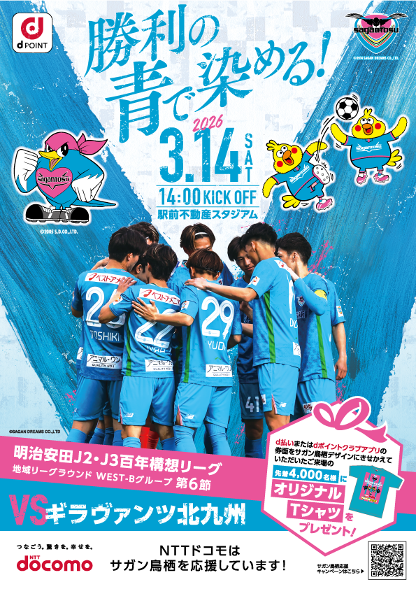 株式会社NTTドコモ 九州支社(以下、ドコモ)は、株式会社サガン・ドリームス(以下、サガン鳥栖)のスポンサードゲームを2026年3月14日(土曜)に開催いたします。