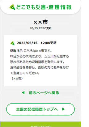 災害・避難情報の配信履歴をWebサイトで確認できます。
