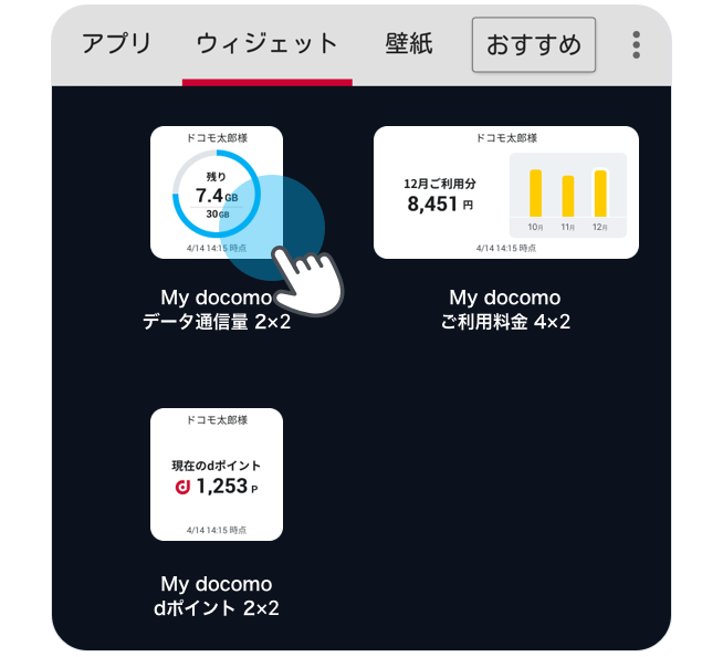 ウィジェットを利用するとMy docomoアプリの一部情報をOSホーム画面で確認できます。