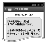 - 渡航先の通信事業者などの事情や機種の設定によって、お知らせSMSが届かない場合があります。