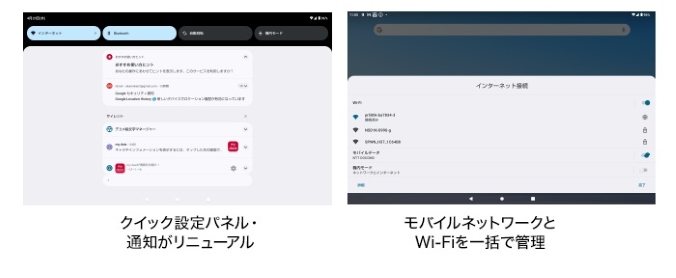 クイック設定パネルや通知が大幅にリニューアルされ、使いやすくなりました。