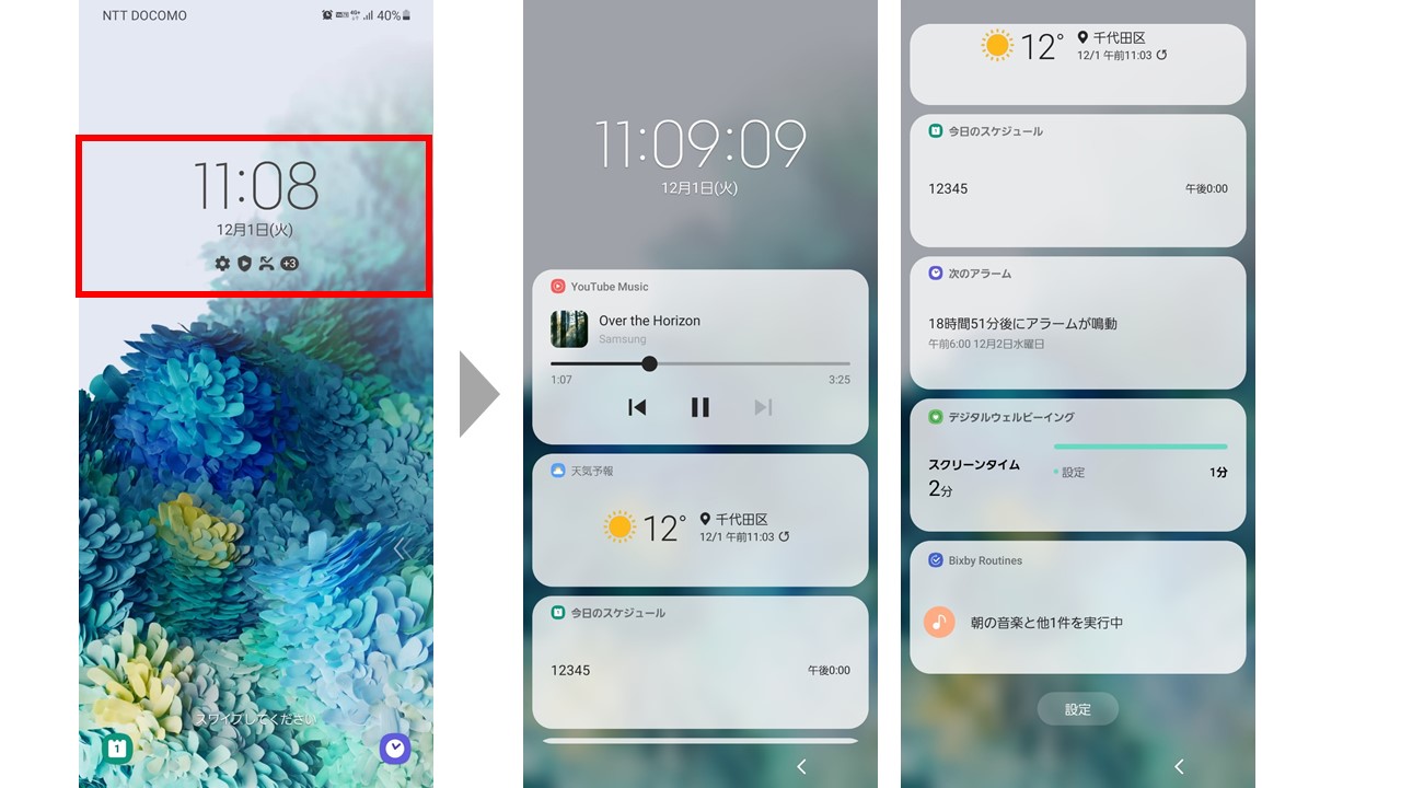 ロックスクリーン画面で時刻をタップすることで、ウィジェットにアクセスできるようになりました。
