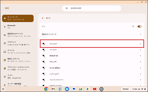 Chromebookを起動し、初期設定を実施したのちeSIM開通を行います。eSIM開通時は、Wi-Fiの接続が必須です。