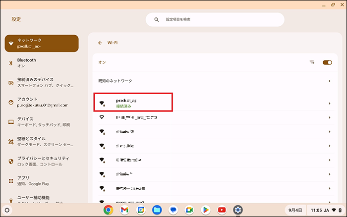 【5】Wi-Fiネットワークに接続されると「接続済み」と表示されます。
