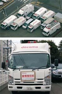 ドコモでは地震発生により東北の約4,900もの基地局が一時的にサービス中断となりました。しかし、全国からの支援を含め、総勢4,000名体制による復旧活動により2011年4月30日に、震災前のエリアにほぼ復旧しております。